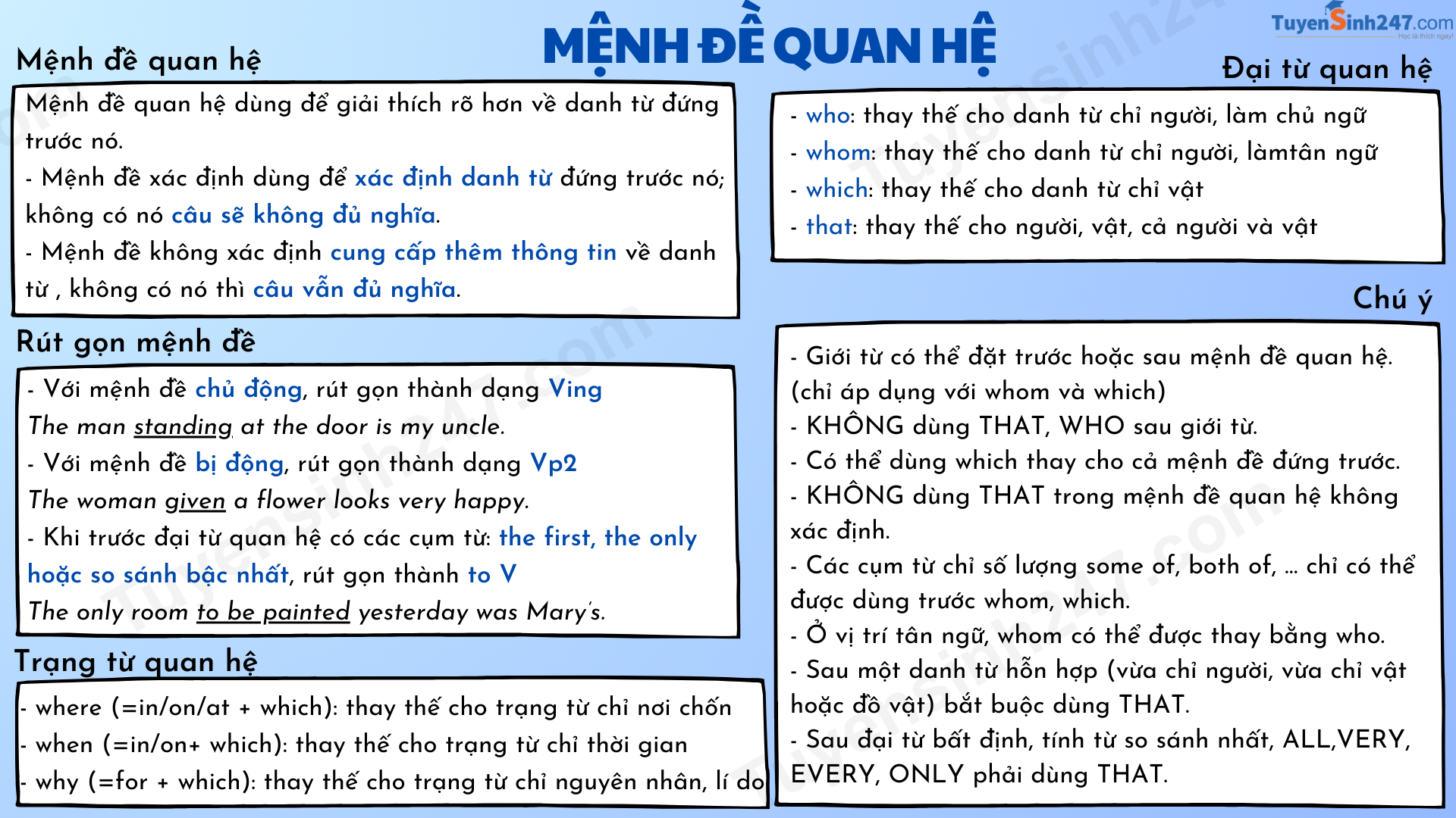 Phân loại mệnh đề quan hệ --- Xem chi tiết tại đây.