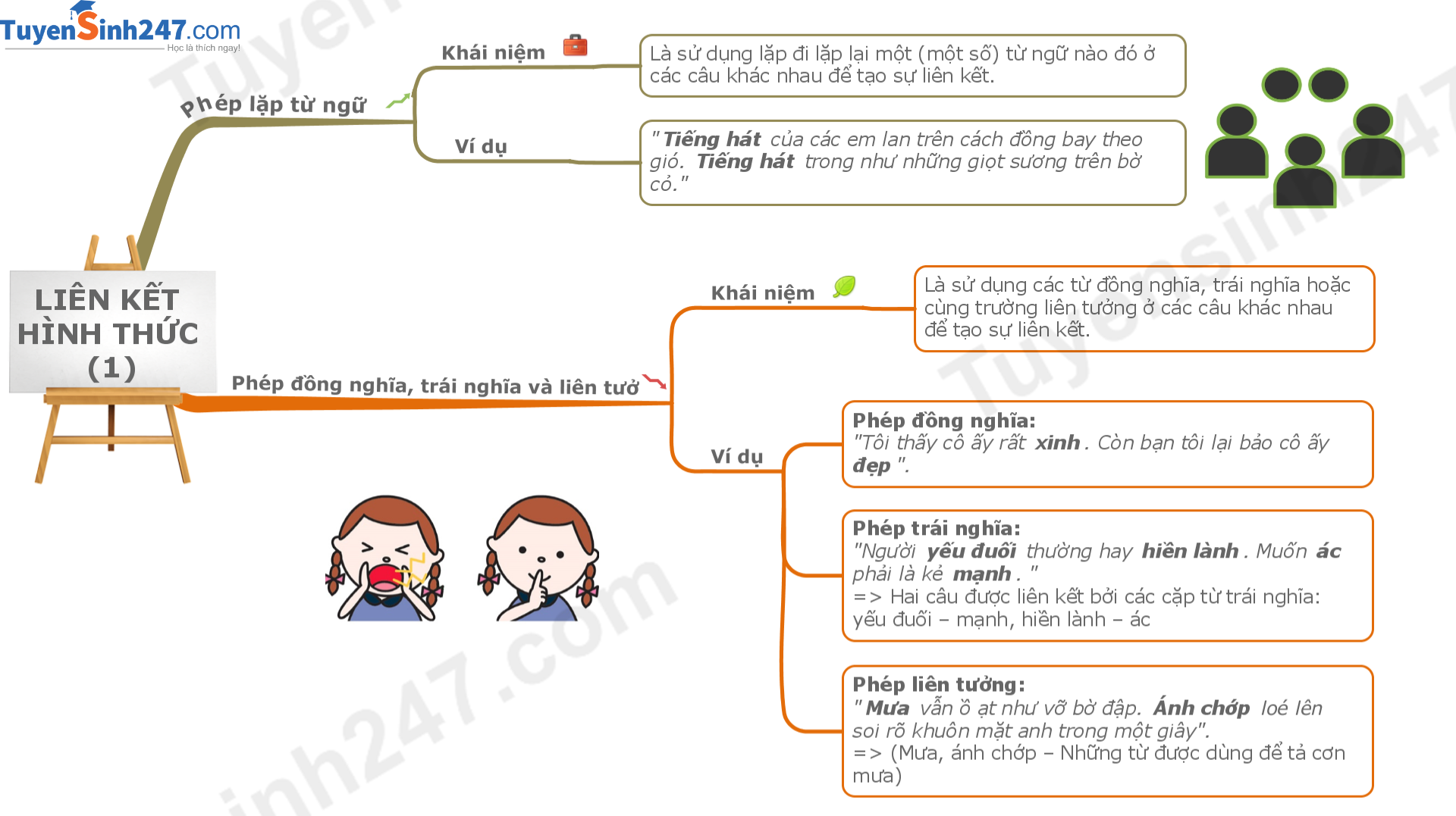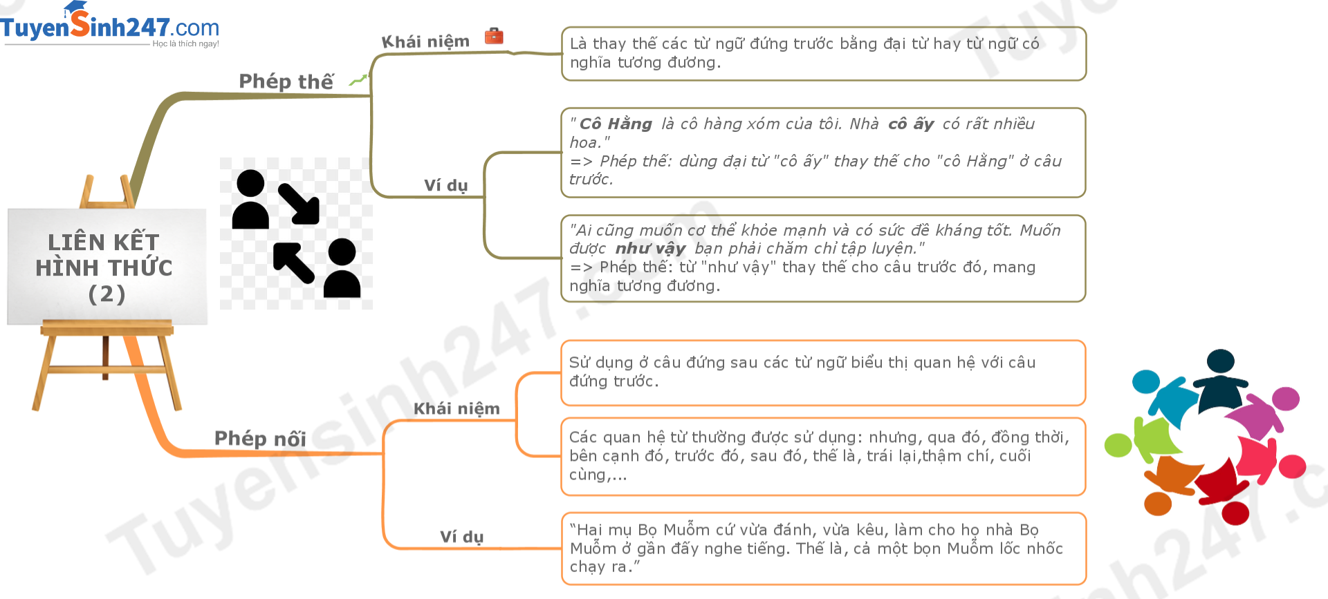 Lý thuyết tổng hợp dạng sơ đồ tư duy: Các phép liên kết câu và đoạn văn