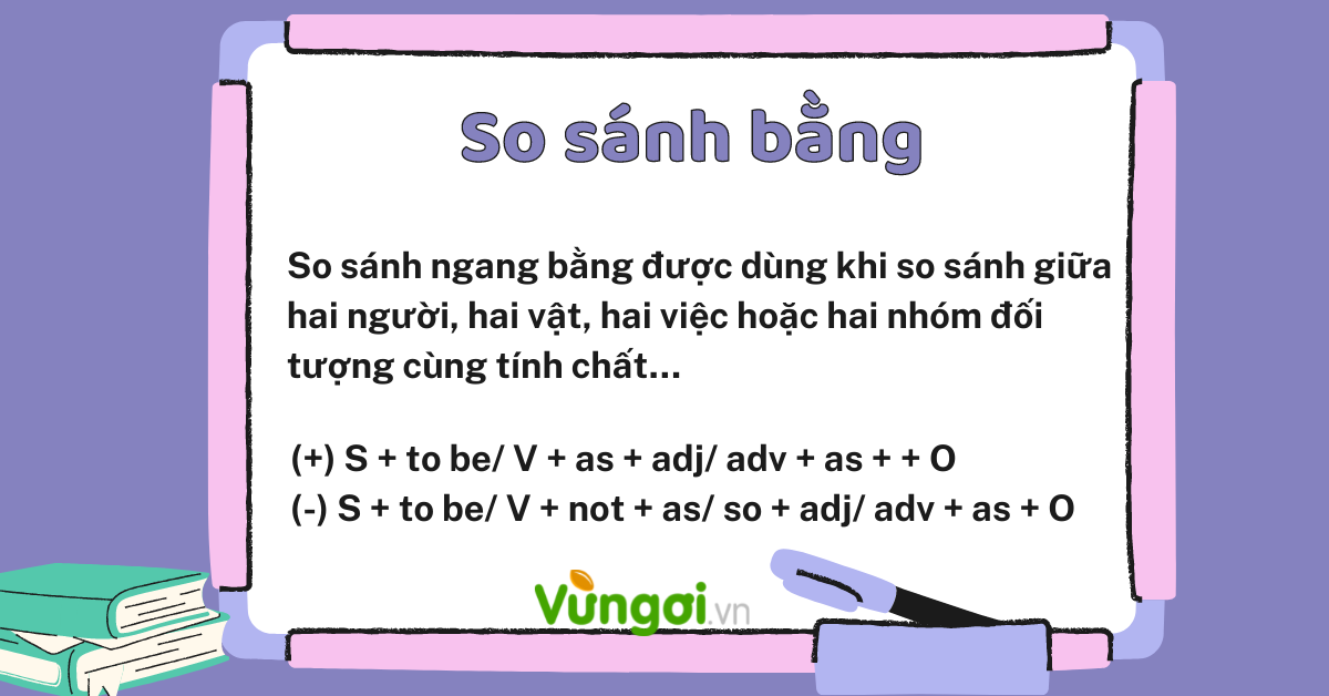So sánh ngang bằng được dùng khi so sánh giữa hai người, hai vật, hai việc hoặc hai nhóm đối tượng cùng tính chất…